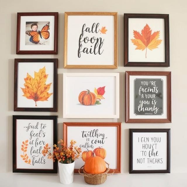 Arrange art prints, photos, and quotes with autumn motifs on a gallery wall. Mix frames in different finishes to add interest. Highlight seasonal memories or favorite fall quotes for a personal touch. It’s a creative way to showcase your style while celebrating the season.