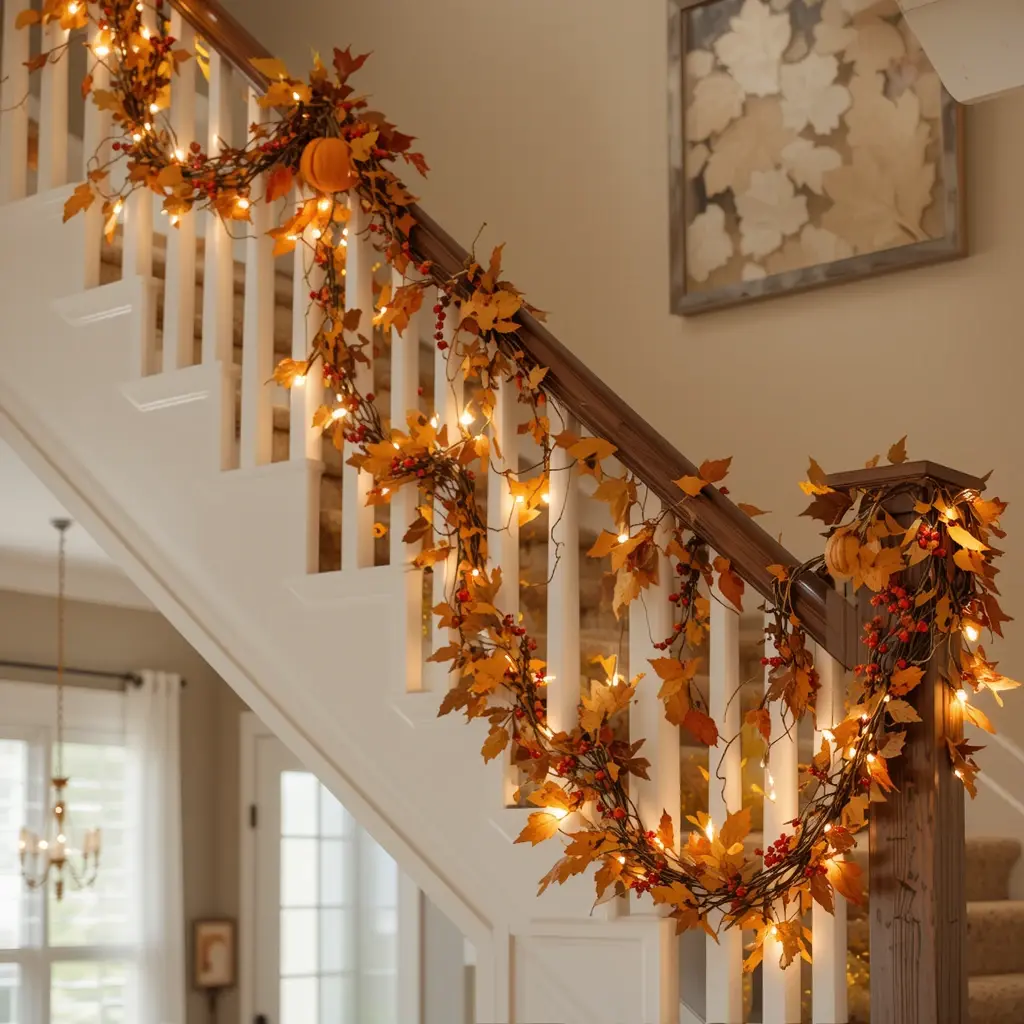 Garlands instantly add charm and color. String dried leaves, mini pumpkins, or berry sprigs along staircases, doorways, or across windows. You can make your own with craft supplies or buy pre-made ones for convenience. For an extra cozy vibe, intertwine fairy lights within the garland. It’s a simple touch that makes any space feel festive and warm.