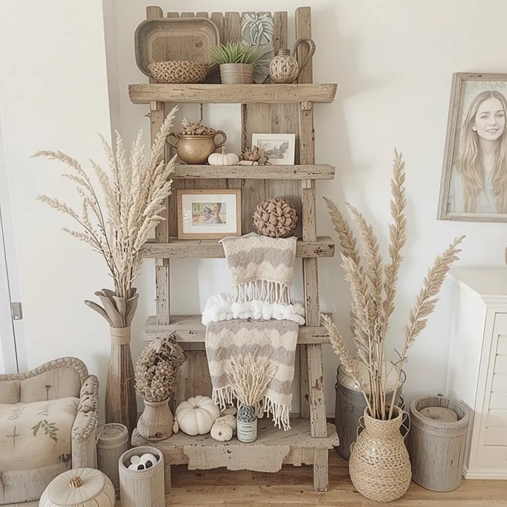 Rustic wood elements evoke the cozy cabin feel perfect for fall. Use wooden trays, bowls, or picture frames to add warmth and texture. A wooden ladder can serve as a display for blankets or small decor pieces. Reclaimed wood furniture or accents lend authenticity and complement other natural elements. These touches make your decor feel layered and thoughtfully curated.