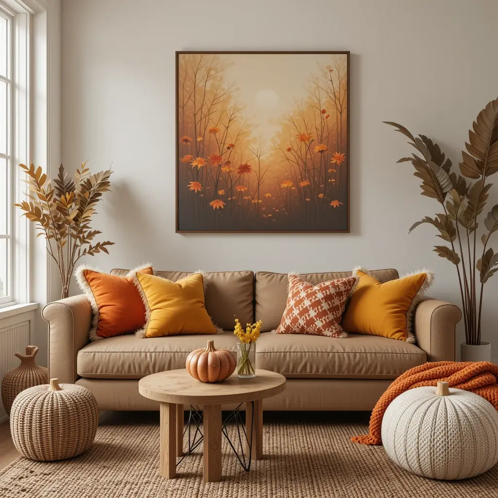 Layer your sofas and chairs with plush throws and pillows in fall colors and textures. Opt for chunky knits, faux fur, or plaid patterns for maximum coziness. These soft additions invite relaxation and make your living space warm and inviting. Switch out lighter summer fabrics for these richer, warmer options to reflect the seasonal change.