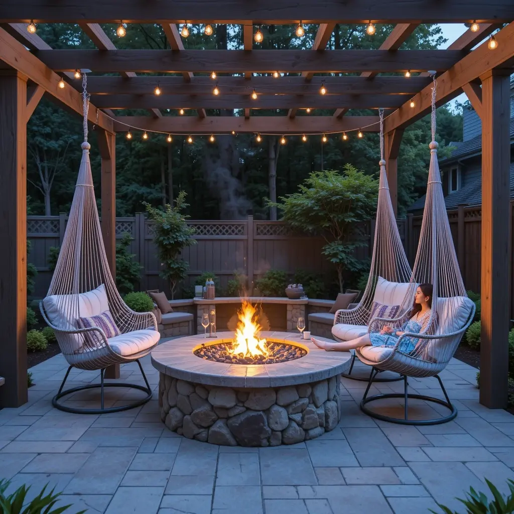 Okay, hear me out on this one – hanging hammock chairs around your fire pit might sound unconventional, but they’re absolutely magical. I installed three around my fire pit last year, and they’ve become everyone’s favorite spot. The gentle swaying motion combined with the warmth of the fire creates this incredibly soothing experience.