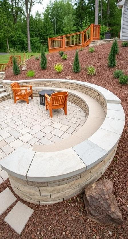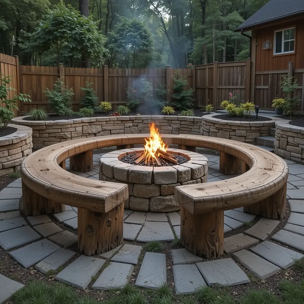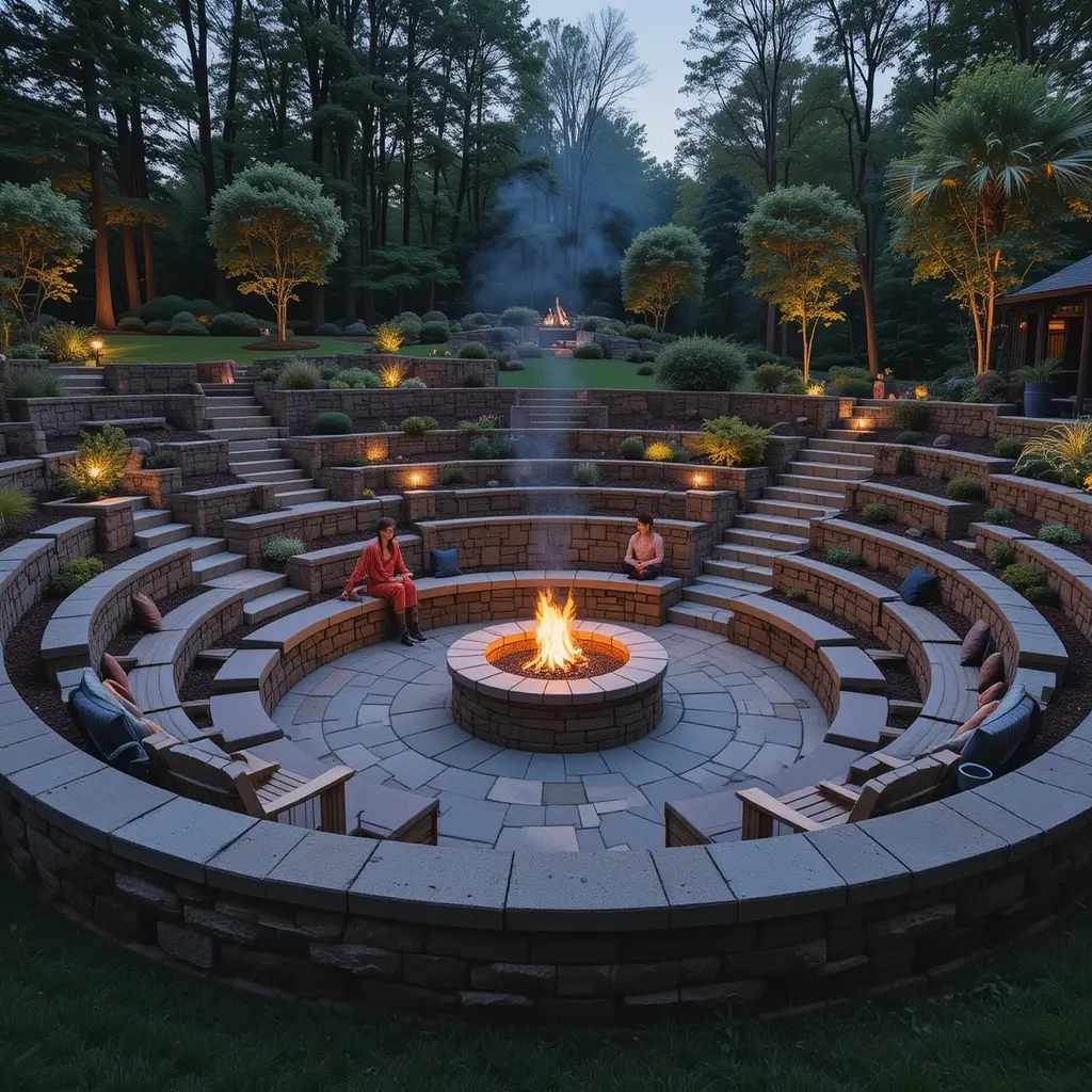 If your fire pit sits in a natural depression or you want to accommodate larger groups, tiered seating is brilliant. Multiple levels ensure everyone gets a great view of the fire while creating this cool amphitheater vibe. I’ve seen this setup work amazingly well in sloped backyards.