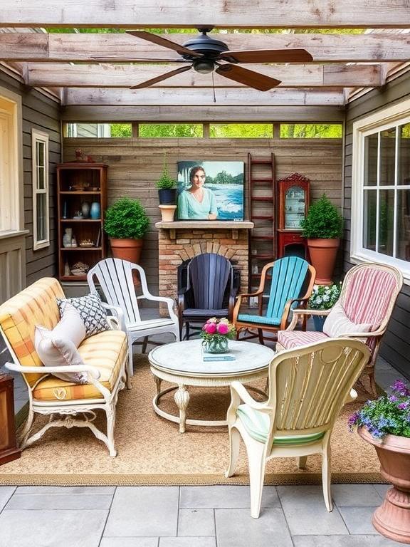 Creating an eclectic seating arrangement with vintage or antique chairs adds incredible character and becomes a conversation starter itself. I’ve collected various styles over the years – from old metal lawn chairs to refinished wooden pieces – and the mix creates this amazing, collected-over-time aesthetic.