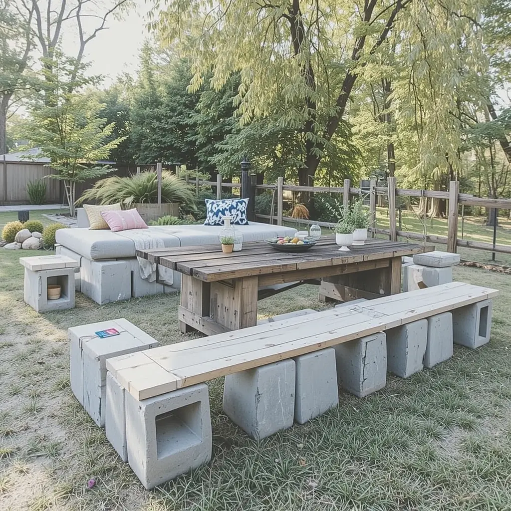 6. Concrete Block and Wood Board Benches