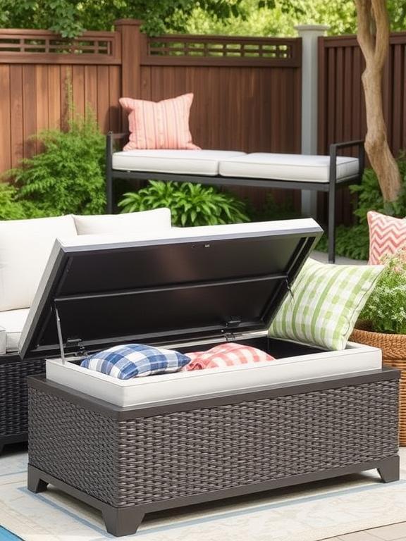 Smart storage solutions are essential in outdoor spaces, and convertible ottomans that double as benches are pure genius. These pieces provide seating when needed and footrests when you want to stretch out. Plus, they hide cushions, blankets, and fire pit accessories inside.