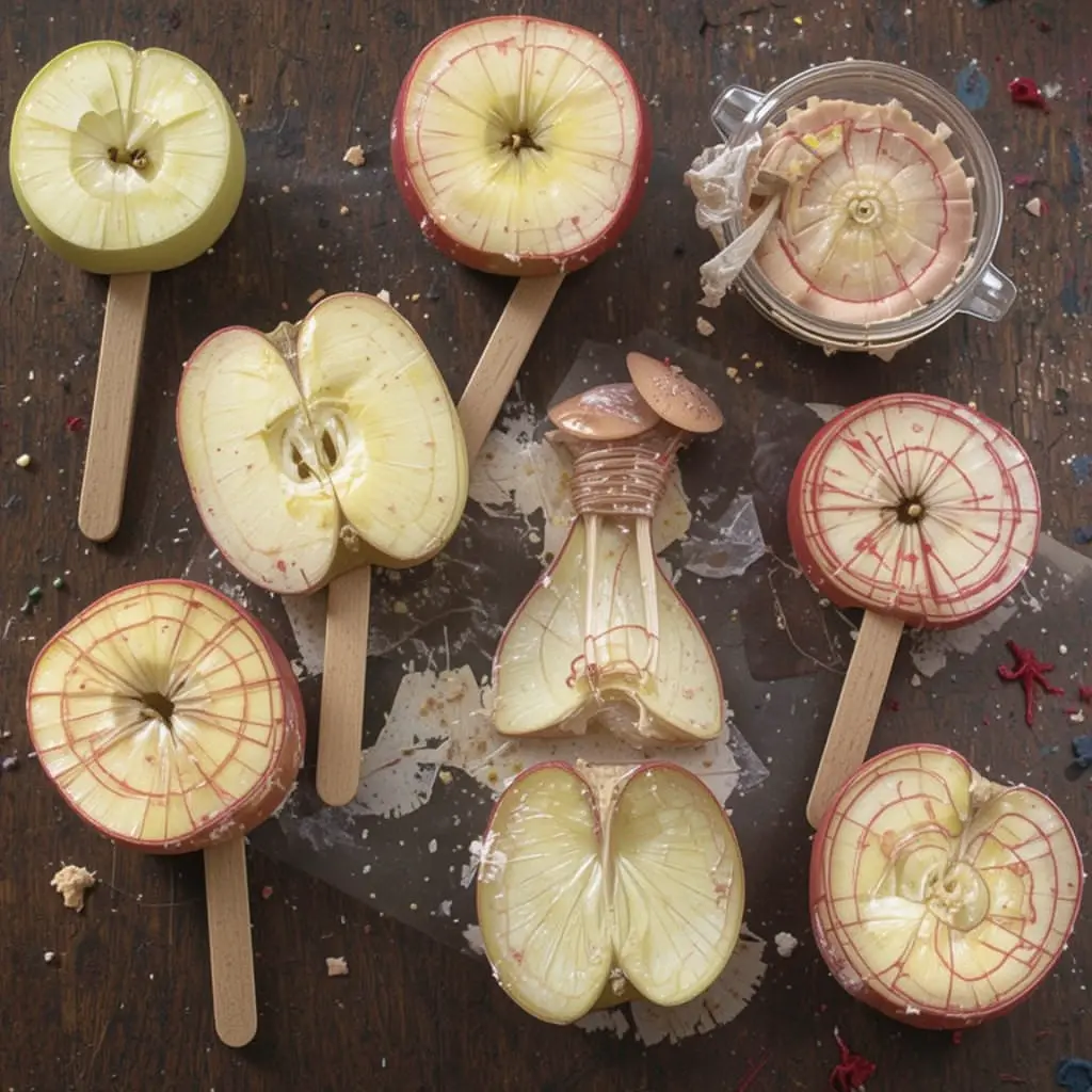 Cut apples into quarters and attach a stick to each for a handle.