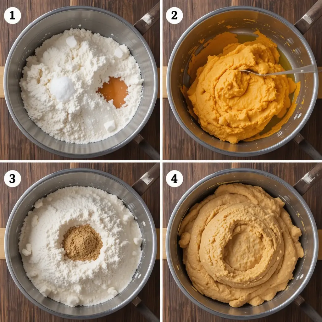 Add 1.5 cups water, 2 tbsp oil, orange food coloring, and 1 tbsp pumpkin spice.