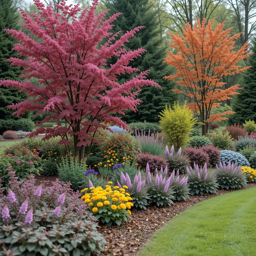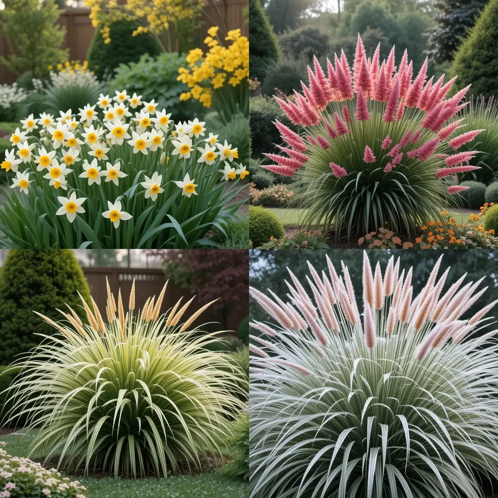 Plant spring bulbs like daffodils and tulips in fall. Choose shrubs with interesting bark or berries for winter appeal. Ornamental grasses look stunning when they catch winter frost and provide texture year-round.