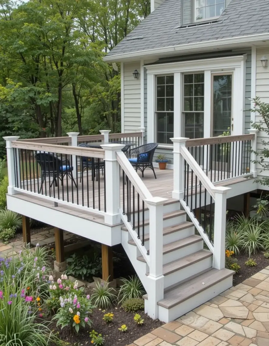 Design a deck that extends over a water feature or low area of your garden. Use nautical-inspired railings and decking materials. This creates an interesting focal point and makes your space feel larger.
