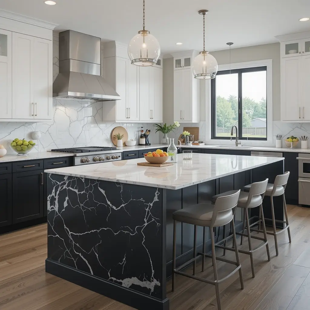 Why stick to one material? Go for two-tone counters—like marble on the island and quartz on the perimeter. It breaks up the space and lets you mix looks and budgets.
