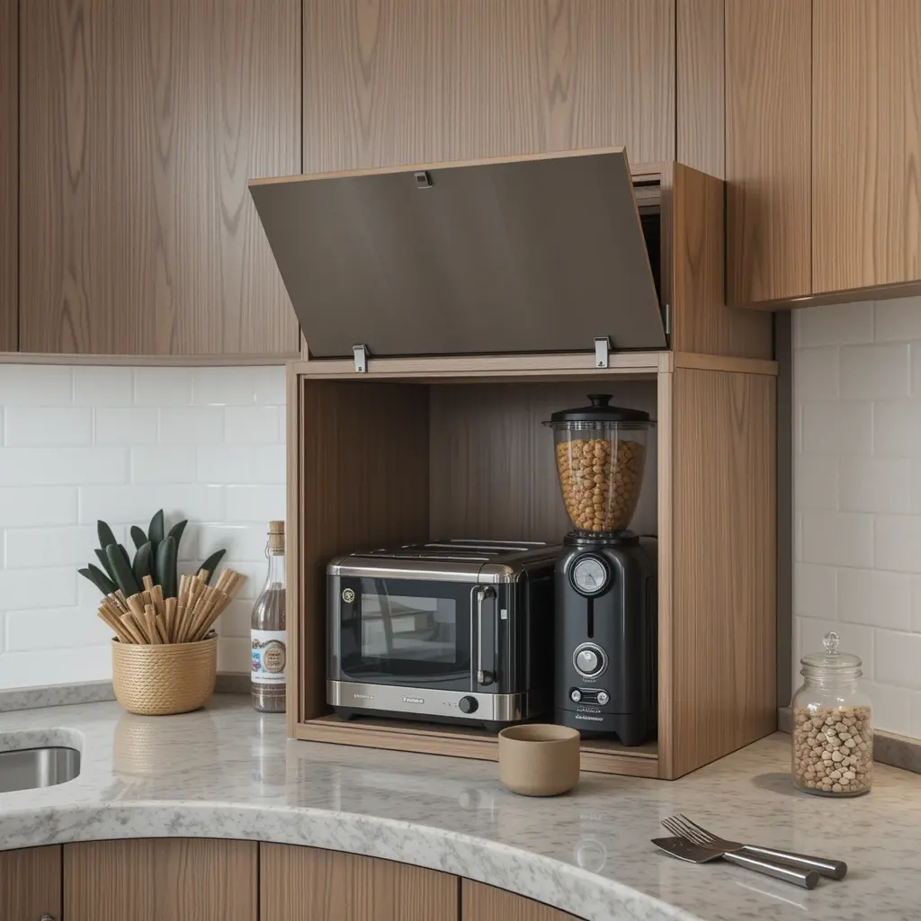 Hide your toaster, blender, or espresso machine with a pop-up appliance garage built into your counter. You keep your sleek look without sacrificing everyday function. No more cords and clutter.