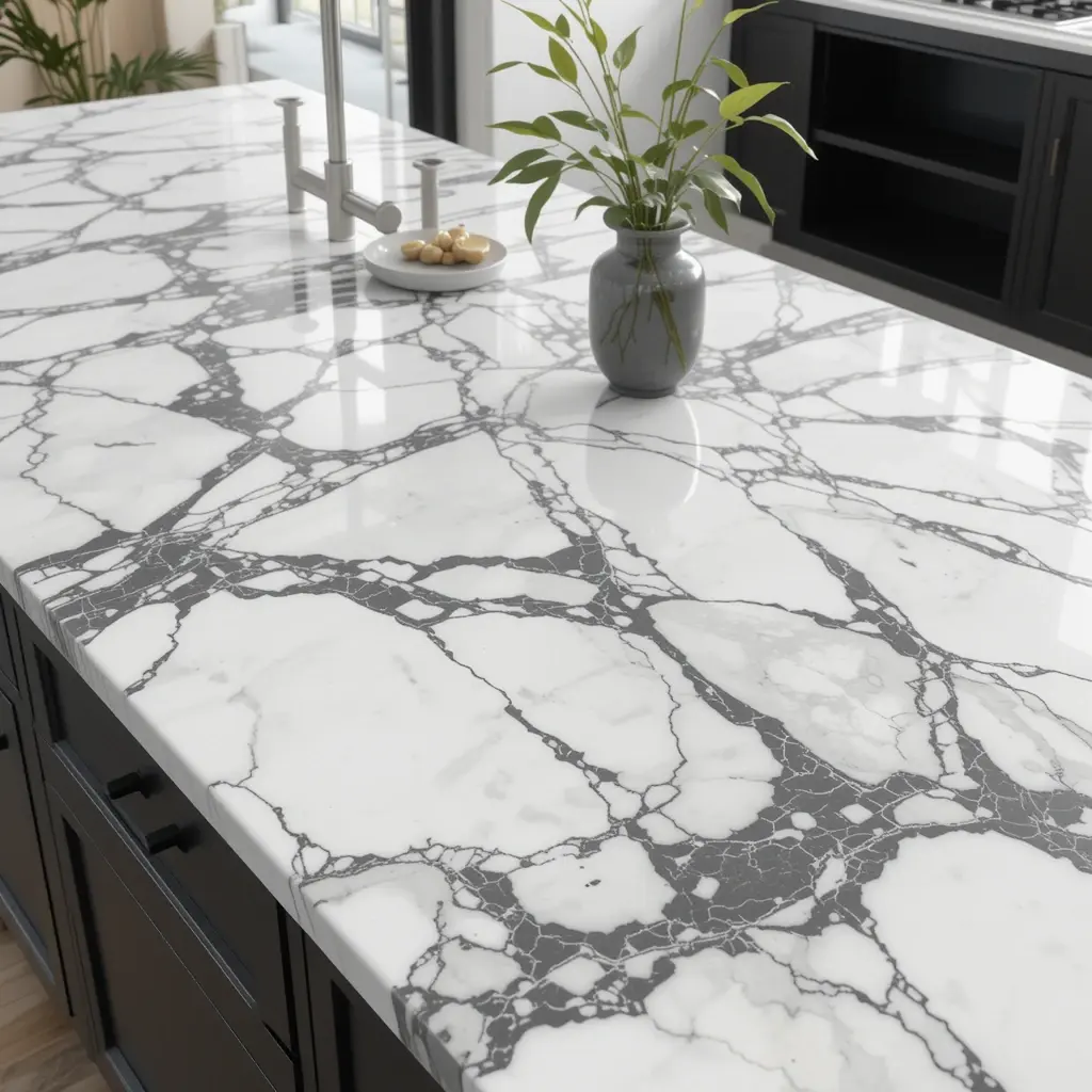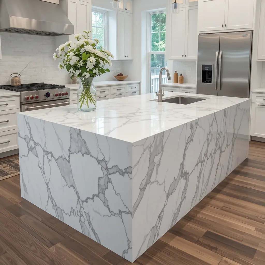 Waterfall edges aren’t new, but they still make a bold statement. A quartz waterfall counter looks clean, modern, and expensive (even if it’s not). Choose soft patterns to keep it timeless.