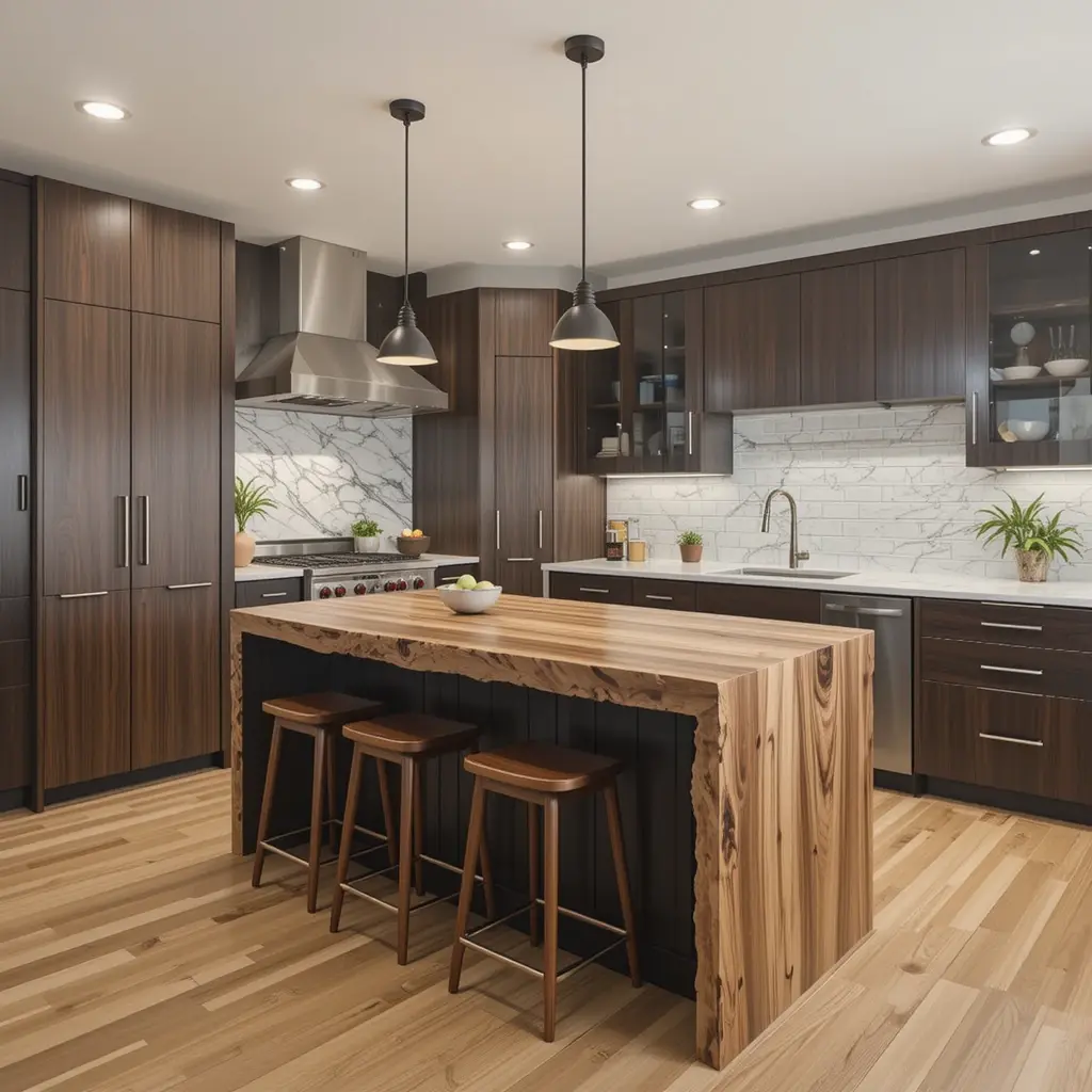 One section of live edge wood can totally transform a modern kitchen. It adds an organic touch that breaks up straight lines and hard materials. Use it for a breakfast bar or counter end.