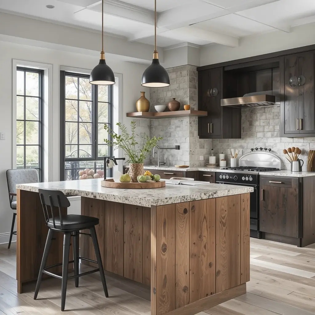 Blend materials by pairing a wood counter section with a cool-toned stone for contrast. It’s visually appealing and gives you zones—like prepping on stone and dining on wood. It’s a designer trick that works in any style kitchen.