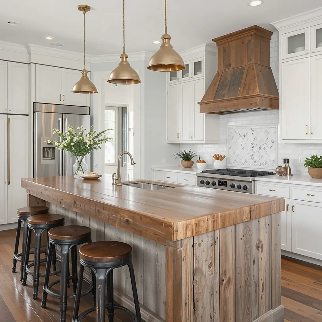 For warmth and character, add a reclaimed wood counter section—especially on an island or bar area. The patina tells a story and it instantly makes the space feel lived-in and real. Pair with matte metals or aged brass for harmony.