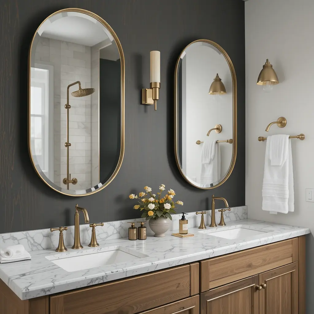 A spacious double vanity eliminates morning traffic jams while providing ample storage and counter space for all your grooming essentials. Choose materials like natural stone, quartz, or even exotic wood that complement your overall design theme. Ensure each sink area has adequate lighting and storage to function independently. The psychological benefit of having your own dedicated space cannot be underestimated, especially in shared bathrooms where personal territory matters.