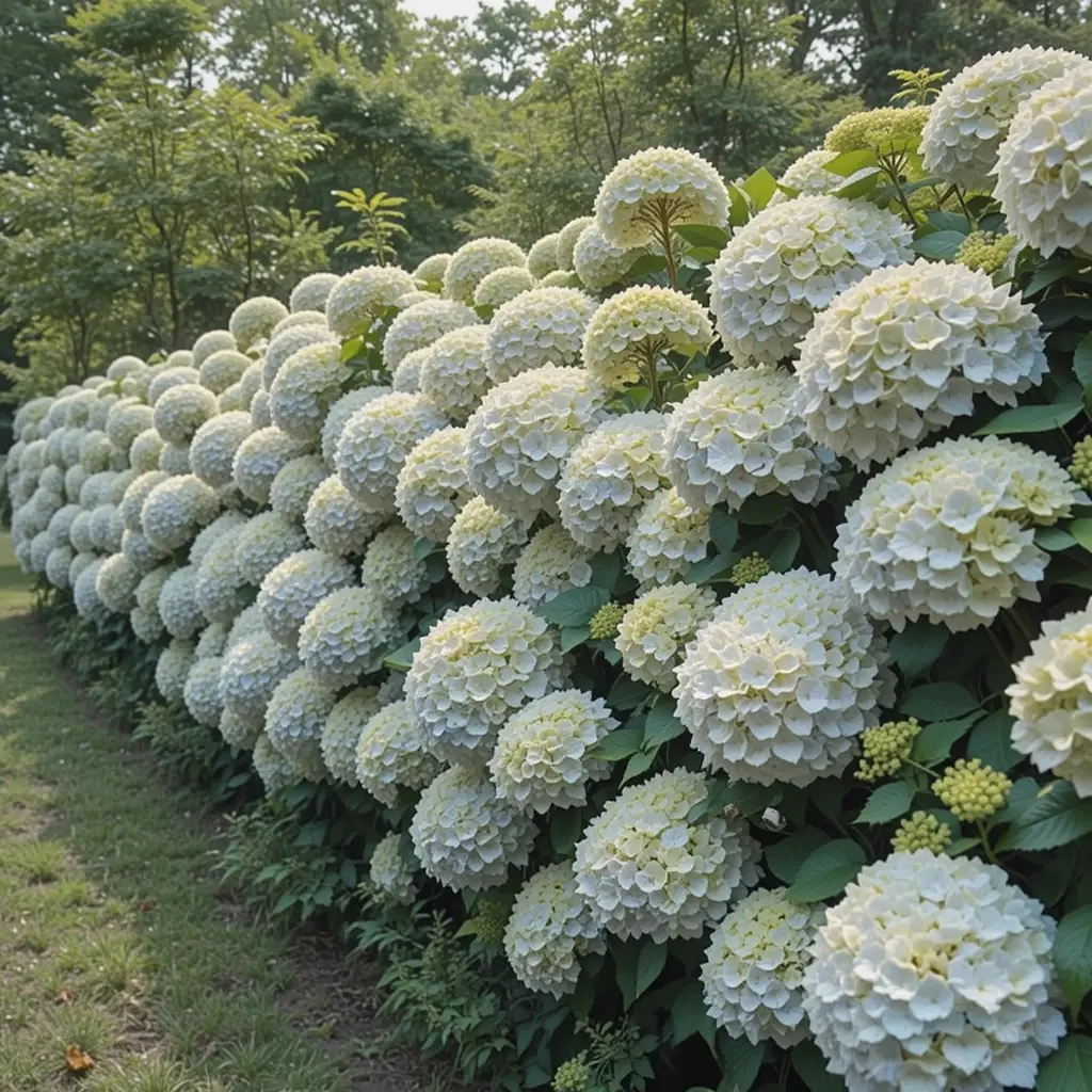 Who needs expensive fencing when you can create a living wall of hydrangeas? Limelight hydrangeas are my go-to for this because they grow tall and full, reaching 6-8 feet easily. I planted them 3 feet apart along my property line, and now I have complete privacy plus stunning blooms.