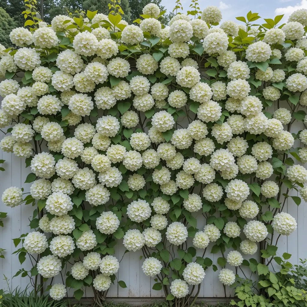 Most people don’t know about climbing hydrangeas, but they’re absolute game-changers for vertical spaces. I trained one up a blank wall, and now I have this living green wall covered in white lacecap flowers every summer.
