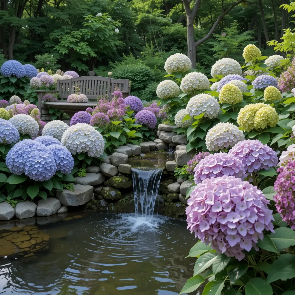 Water and hydrangeas are natural partners! I positioned several varieties around my small pond, and the reflection effect is absolutely stunning. The moisture from the water feature creates the perfect microclimate for these moisture-loving plants.