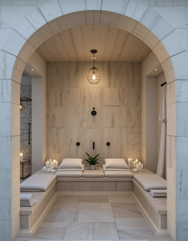 A spa cabana focuses on serenity with soft neutrals, plush towels, and subtle scents. Adding features like an outdoor shower or foot-rinse station elevates the experience. Use smooth stone and natural textures to create a soothing atmosphere. Ambient lighting helps the space feel calm after sunset. This concept works beautifully for homeowners who want a daily moment of escape.