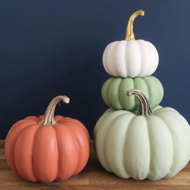 Pick a single color—like matte navy, terracotta, or sage green—and paint the pumpkin completely. It’s modern, understated, and fits any interior aesthetic. Stack a few together in different shades for a trendy look. Bonus: These pair beautifully with neutral fall décor.
