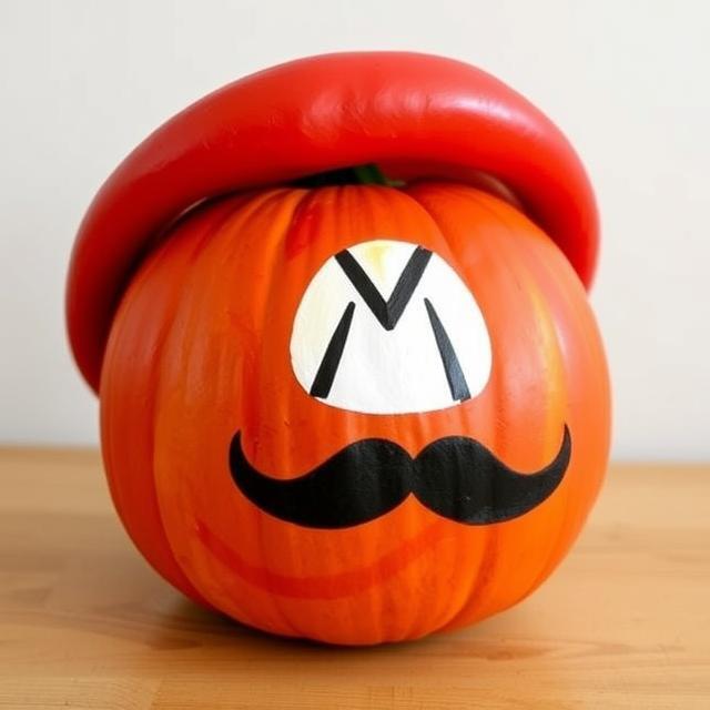 Paint your pumpkin red and turn it into Mario’s hat, complete with the “M” logo on the front. You can add a little black mustache on the pumpkin itself for fun. Perfect for game lovers or Halloween gamers’ parties. Luigi, Yoshi, or Princess Peach pumpkins would make a fun group.