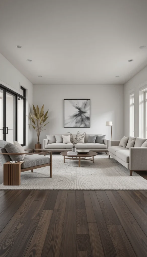 Dark wood floors deserve to be seen. Avoid wall-to-wall rugs or oversized furniture that hides them. Leave breathing room around key pieces like sofas and coffee tables. This creates a sense of flow and highlights the floor’s natural grain. Minimalist spaces benefit from negative space.
