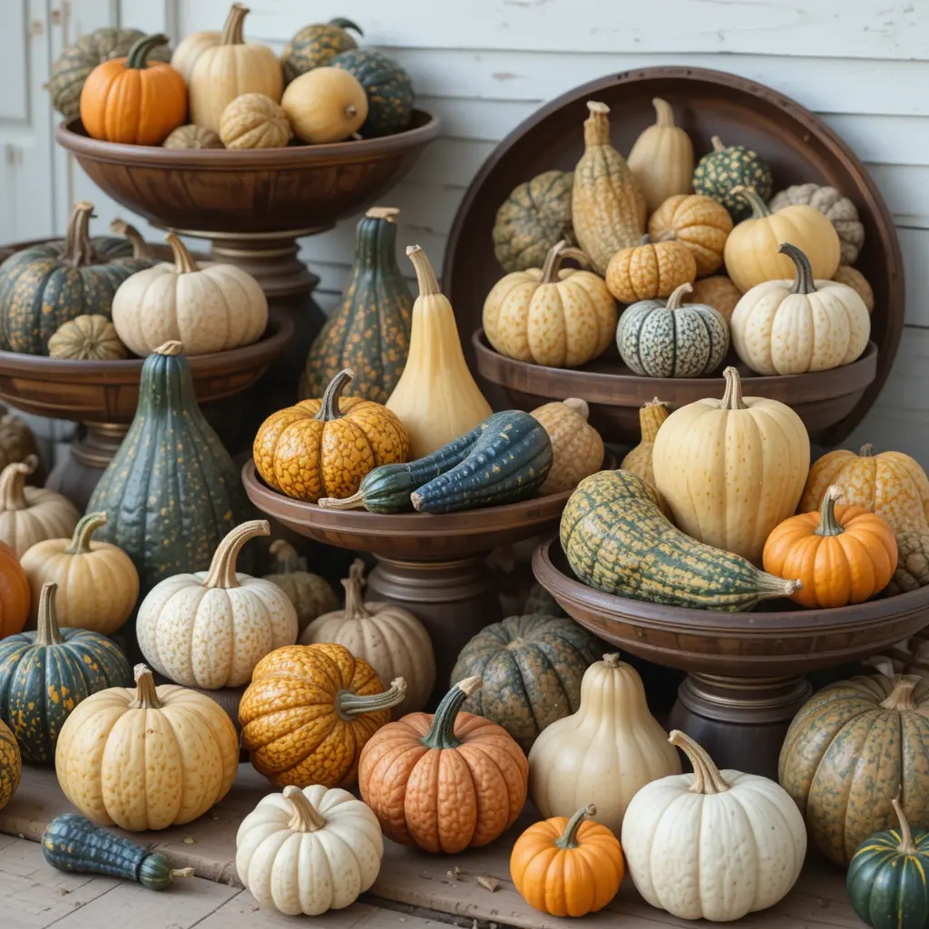 Showcase the incredible diversity of fall’s harvest with displays featuring various gourds and squash in unique shapes, sizes, and colors. Include warty pumpkins, bottle gourds, acorn squash, and delicata squash for textural variety. Arrange them in wooden bowls, vintage baskets, or scattered naturally around your porch space. The unusual shapes and patterns create visual interest and celebrate the season’s natural abundance.