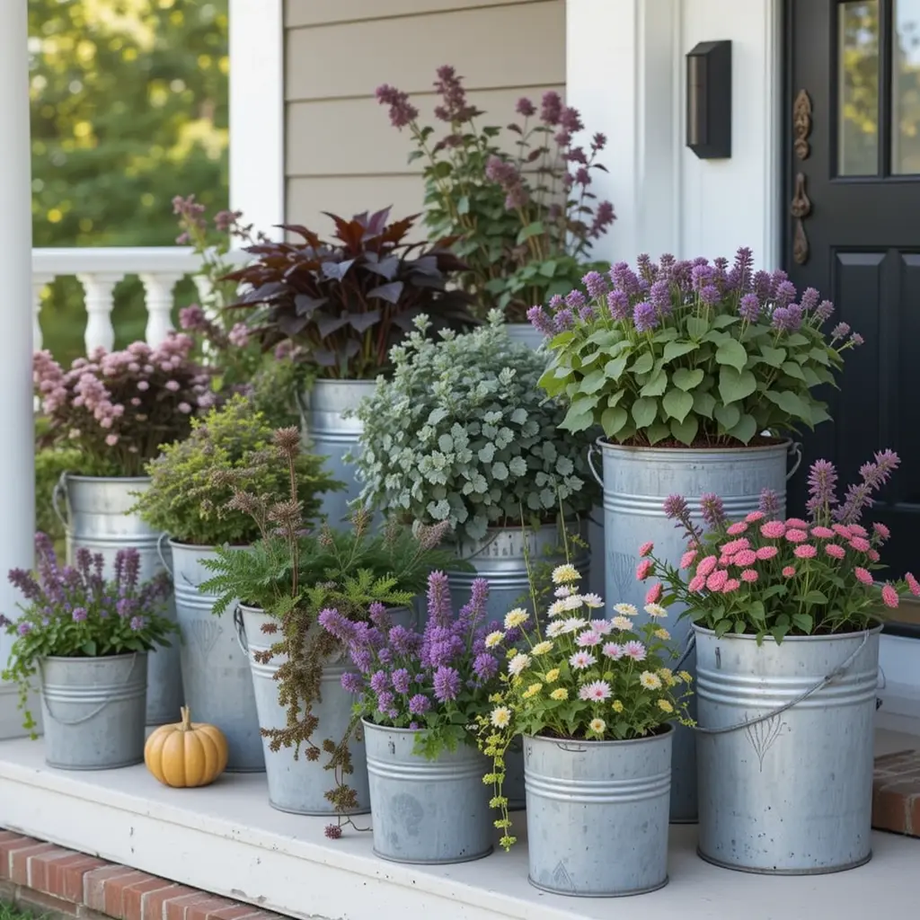 Repurpose vintage containers like galvanized buckets, old watering cans, or antique milk jugs as unique planters for your fall display. Fill these charming containers with seasonal plants like ornamental kale, asters, or trailing ivy. The patina and character of vintage pieces add instant charm and create conversation starters for visitors. Mix different sized containers throughout your porch space for a collected-over-time appearance.