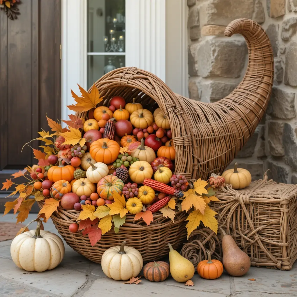 Create traditional cornucopia displays using wicker baskets filled with seasonal produce. Fill large baskets with mini pumpkins, gourds, Indian corn, and colorful autumn leaves for an abundant harvest look. Add some artificial fruits like apples and pears for extra color and texture. Position these bountiful arrangements near your front door to create an immediate impression of fall abundance and hospitality.