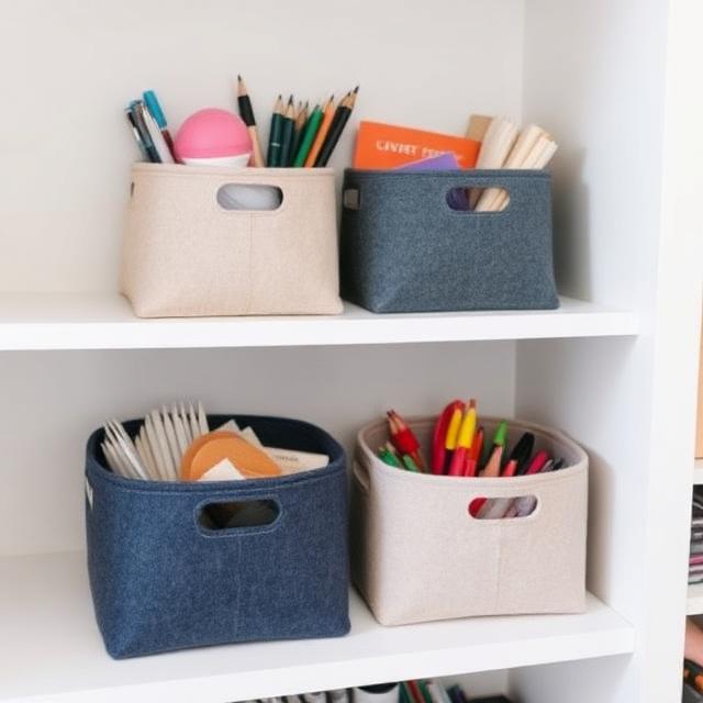 Felt storage baskets combine crafting with organization. They’re ideal for holding craft supplies, toys, or office items. The structure comes from layered felt, which means no rigid frames are needed. These baskets work well in open shelving where you want storage to look intentional. They’re a practical example of how felt can be both decorative and functional.