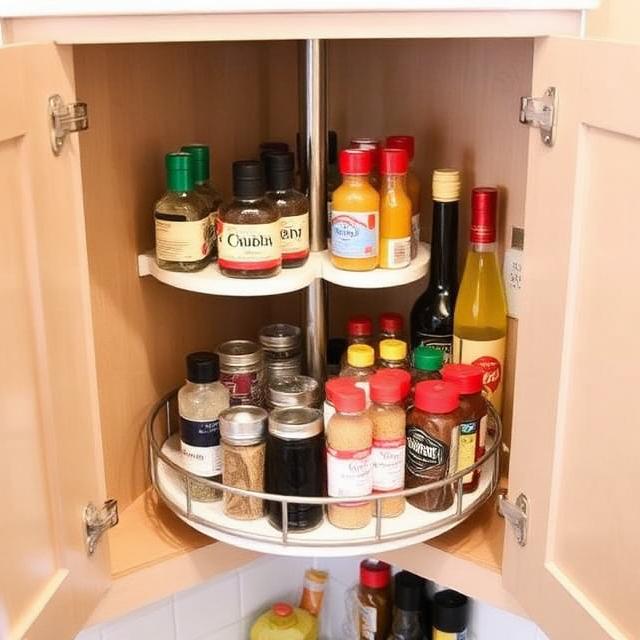 Corner cabinets can be the most frustrating part of a small kitchen. A rotating turntable eliminates dead space and keeps items accessible. Spices, oils, and condiments are perfect candidates. Instead of losing things in the back, everything rotates forward. It’s one of those tools that feels almost magical in tight layouts.