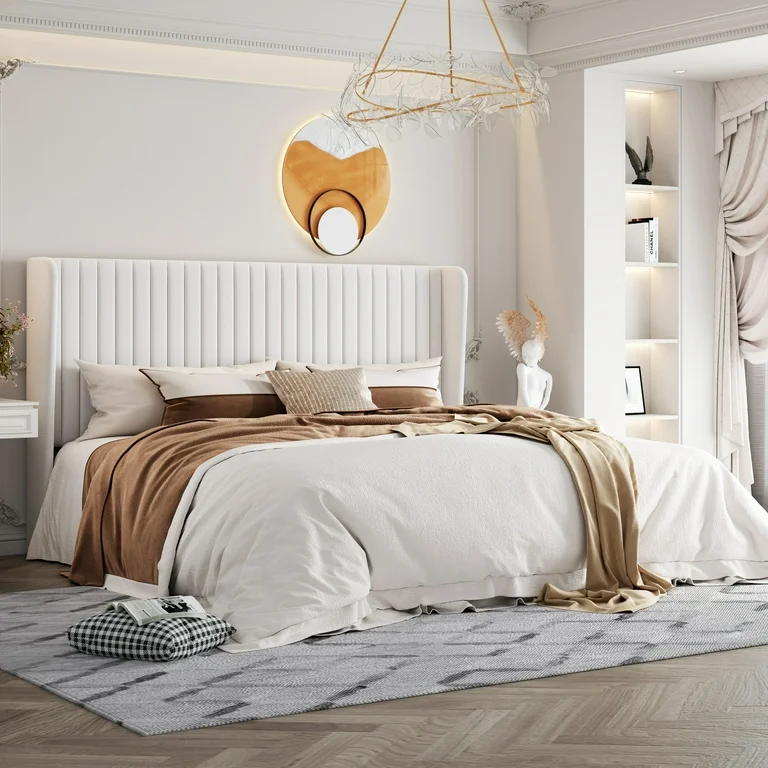 Beds with upholstered or wooden frames anchor the space, while solid nightstands add balance. Rounded edges, classic silhouettes, and natural finishes work better than glossy surfaces or ultra-sharp lines. Each piece should feel calm and intentional, even if the room itself is minimal.