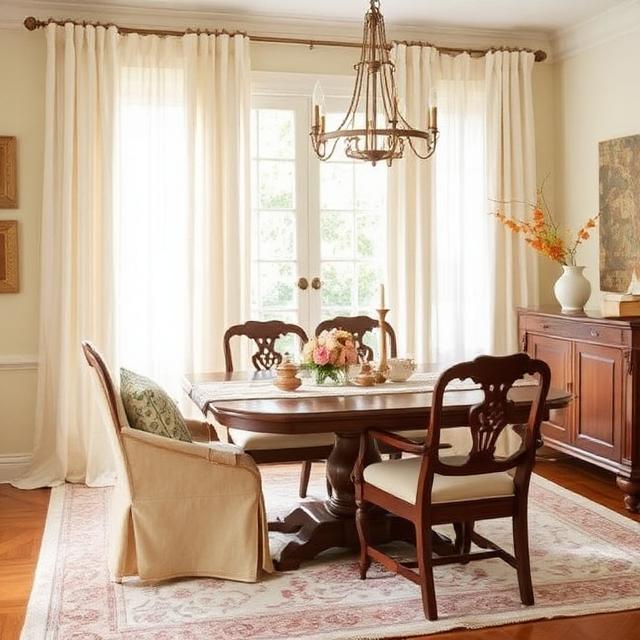Sheer summer curtains and breezy linens feel out of place once evenings get cooler. Transition to medium-weight fabrics like linen blends, velvet, or woven cotton for a cozier feel. Even changing just the curtains or table runner can subtly shift the season indoors. Heavier fabrics help rooms feel enclosed and warm, which is exactly what fall is about. It’s a small switch with a surprisingly big impact.