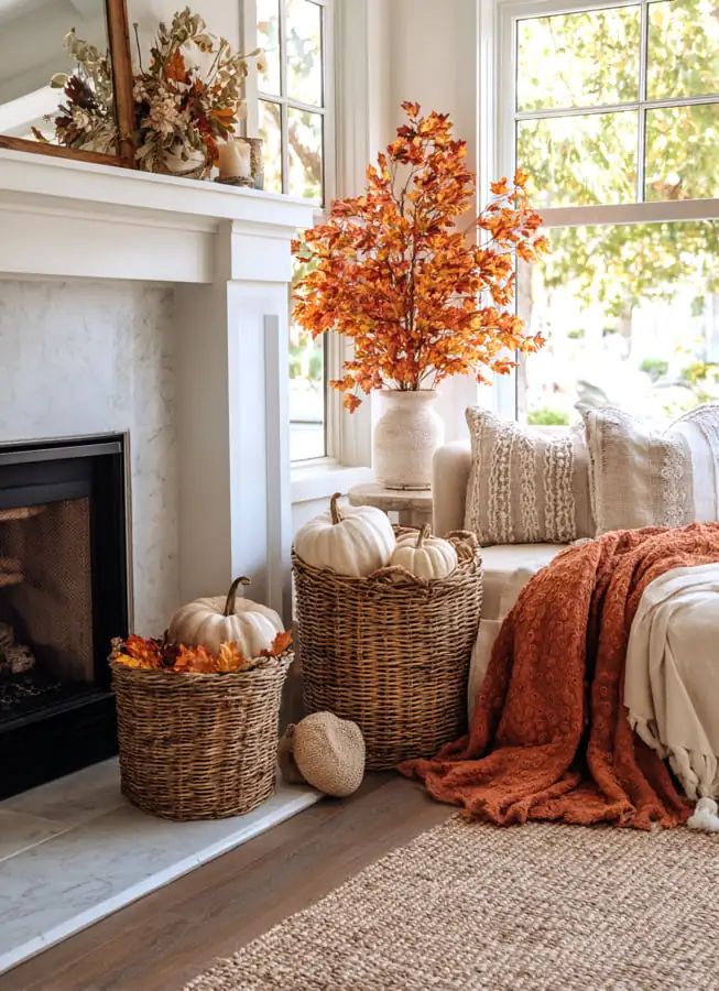 Begin by gently adjusting your color palette rather than replacing everything at once. Summer brights and crisp whites can feel cold as fall approaches, so introduce warmer tones like rust, caramel, olive, and muted gold. This can be as simple as swapping pillow covers or adding a throw in a richer shade. Warm colors visually soften a space and instantly make it feel more seasonally grounded. The key is blending—let the summer neutrals support the fall tones instead of fighting them.