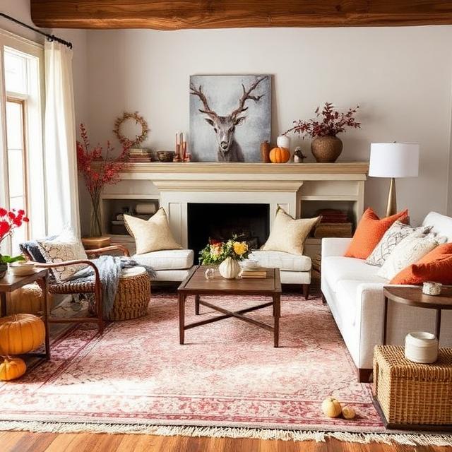 If you use flatwoven or light rugs in summer, fall is the time to layer or switch. Rugs with deeper tones, thicker piles, or vintage patterns add instant warmth. Layering a smaller rug over a neutral base is an easy way to transition without replacing everything. Rugs help anchor furniture and make rooms feel more enclosed. That grounded feeling is perfect for fall.