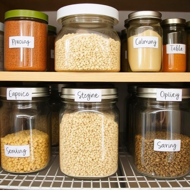 Bulk containers work best for flour, rice, pasta, and grains. They reduce packaging clutter and simplify measuring. Airtight lids preserve freshness longer. Keeping staples visible helps with meal planning. This approach is practical and cost-effective.