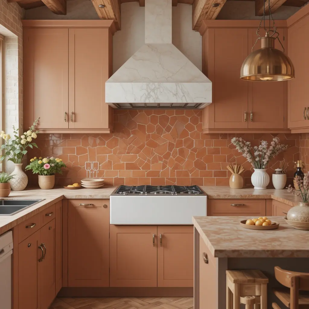 Terracotta is a warm, earthy hue that brings rustic charm to your kitchen. It pairs beautifully with natural wood and brass fixtures. Use it on backsplash tiles, walls, or even cabinets for a cozy vibe. This color creates a welcoming atmosphere that feels grounded and timeless. It’s an excellent choice if you love a Mediterranean or boho aesthetic.