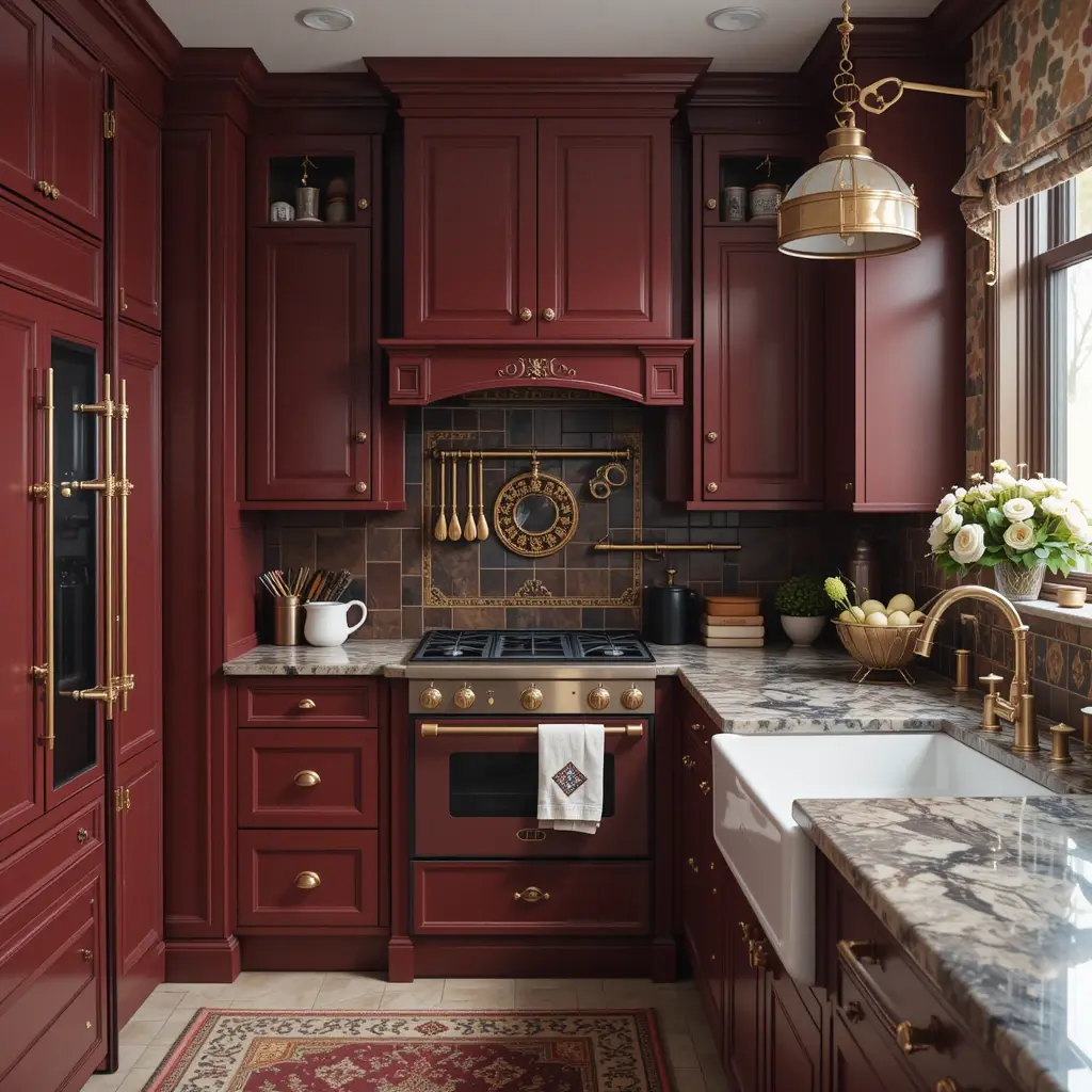 Burgundy adds a rich, opulent vibe to your kitchen, ideal for creating a cozy, intimate space. It pairs beautifully with gold hardware and dark wood accents. Use it on cabinets or as an accent color to add depth. This hue works especially well in traditional or vintage kitchens, lending a sense of timeless elegance. Burgundy makes a bold statement without being overpowering.