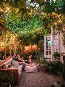 What was earlier a simple parking area now gets converted into an amazing boho-chic outdoor patio, really showing just how creativity can completely redefine a space. This cozy lounging spot between indoors and outdoors invites one into a retreat that feels like an extension of the home.